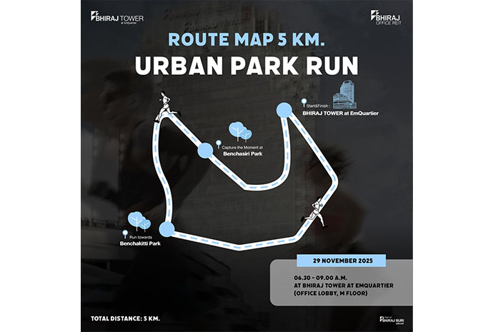 เมื่อวันเสาร์ที่ 29 พฤศจิกายน 2568 ผู้บริหารอสังหาริมทรัพย์จัดกิจกรรมเชิญชวนผู้เช่าอาคาร BHIRAJ Tower at EmQuartier เข้าร่วมกิจกรรมวิ่งรับพลังใจกลางสุขุมวิท กับ BHIRAJ Tower at EmQuartier x HOKA x MMRC และร่วมสัมผัสประสบการณ์ Urban & Park Run ที่เชื่อมความสมดุลระหว่าง “ชีวิตและสุขภาพ” บนเส้นทางวิ่งสุดพิเศษจากอาคาร BHIRAJ Tower at EmQuartier สู่สวนเบญจกิติ