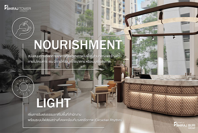 อาคารภิรัชทาวเวอร์ แอท เอ็มควอเทียร์ กำลังเดินหน้าสู่การได้รับการรับรอง WELL Building Standard ภายในปี 2568 นี้ โดยการปรับปรุงคุณภาพทรัพย์สินในครั้งนี้ ผู้บริหารอสังหาริมทรัพย์และกองทรัสต์ให้ความสำคัญกับการส่งเสริมสุขภาวะที่ดีของผู้ใช้อาคารภายใต้คอนเซ็ปต์ WORK WELL LIVE WELL ซึ่งประกอบไปด้วย 10 แนวคิดหลัก ดังนี้
