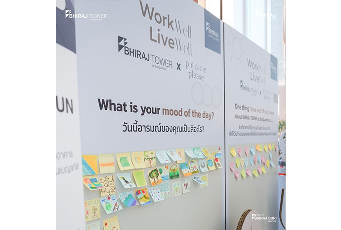 อาคารสำนักงาน ภิรัชทาวเวอร์ แอท เอ็มควอเทียร์ อยากให้พื้นที่เป็นมากกว่าสถานที่ทำงาน เป็นสถานที่ที่ช่วยดูแลการใช้ชีวิตของผู้เช่าในทุกมิติ ทั้งความผ่อนคลาย ความสุข และความสมดุลระหว่างวัน จึงได้จัดกิจกรรม Work Well Live Well ขึ้น โดยจัดขึ้นที่ล็อบบี้โฉมใหม่ของอาคารภิรัชทาวเวอร์ แอท เอ็มควอเทียร์ โดยกิจกรรม Work Well Live Well ประกอบไปด้วย (1) กิจกรรม MOTIONAL AWRENESS BOOTH เติมพลังใจระหว่างวัน ผ่านกิจกรรมที่ช่วยสำรวจอารมณ์และความรู้สึกของตัวเอง (2) AROMA SACHET WORKSHOP ออกแบบถุงหอมจากสมุนไพรและกลิ่นอโรมาที่เลือกได้เอง